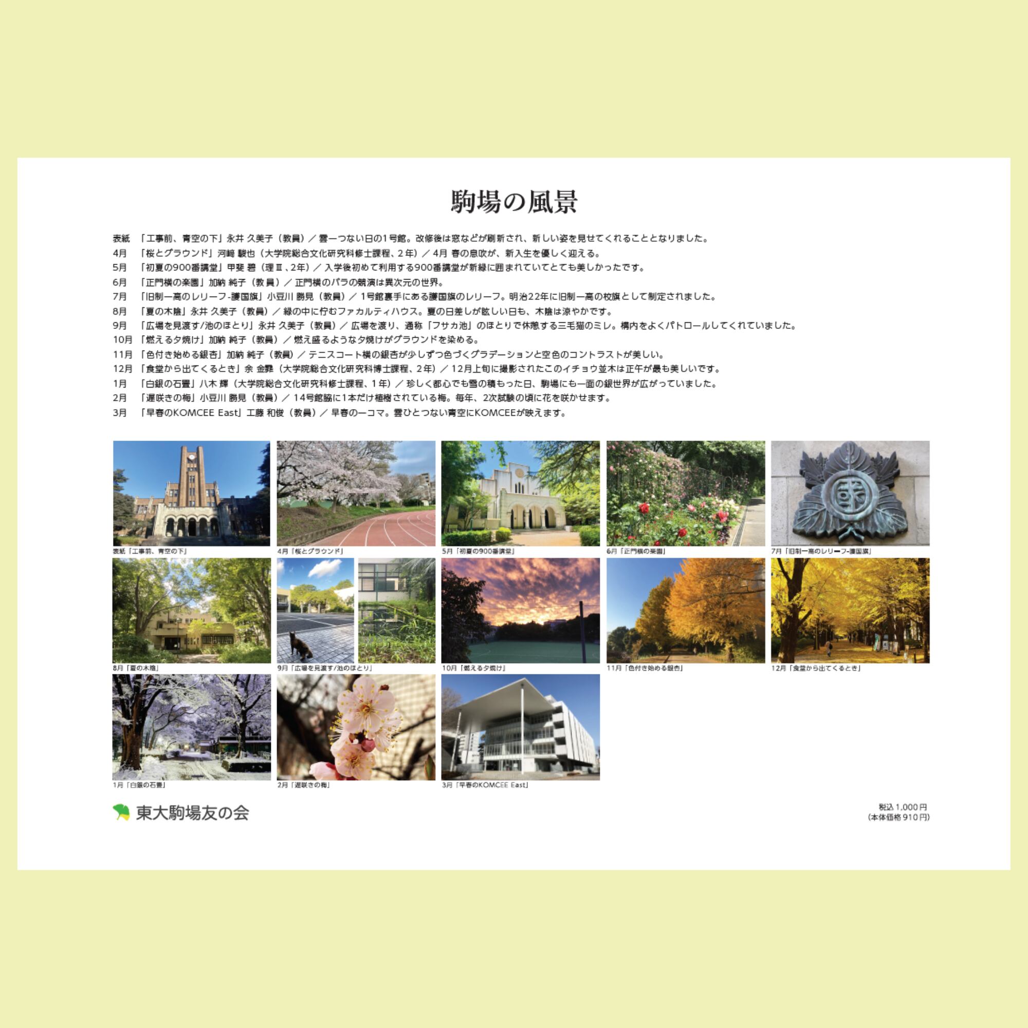 東京大学駒場キャンパスの四季を写真で楽しめるオリジナルカレンダーです。